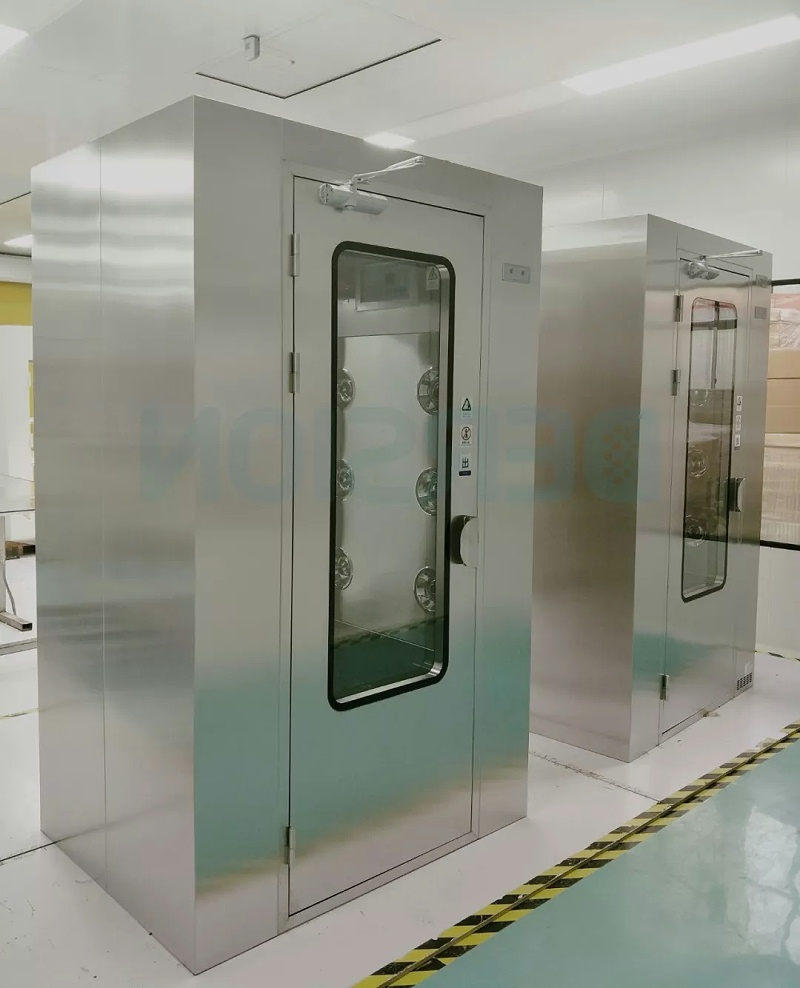 5. 離開風淋室:在一定的時間后,人員或物品離開風淋室。風淋室的高壓風機會繼續工作一段時間,以確保潔凈區域內的空氣持續清潔。